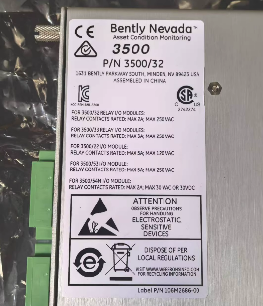 | Evidenziare | Modulo relè a tutta altezza,Modulo relè a 4 canali con logica di allarme,Modulo relè Bently Nevada 3500 3500/32M |